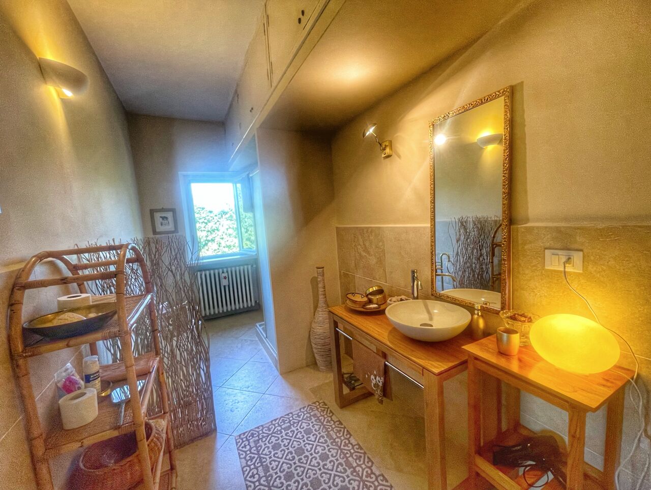 L'arredamento si può definire "eclettico", con un mix di stili e influenze caratterizzato da oggetti dal particolare valore affettivo, reperti dei miei viaggi in giro per il mondo, e innesti "ad hoc" di oggettistica e mobili di varie epoche.